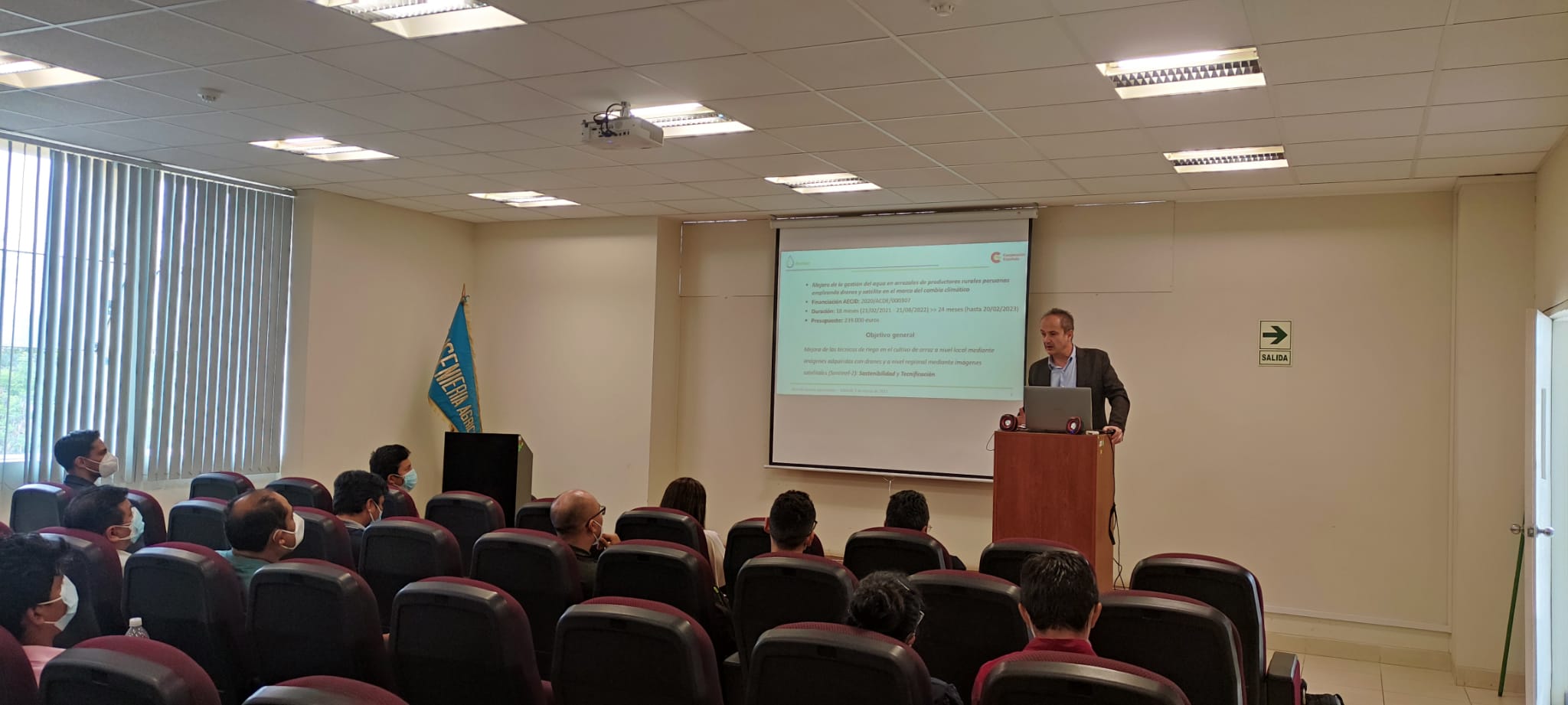 El día 1 de marzo, tuvimos la Jornada técnica informativa del proyecto RiceMon en el Auditorio de la Facultad de Ingeniería Agrícola de la UNALM. Asistieron más de 30 profesionales y técnicos de forma presencial y otros 30 online.